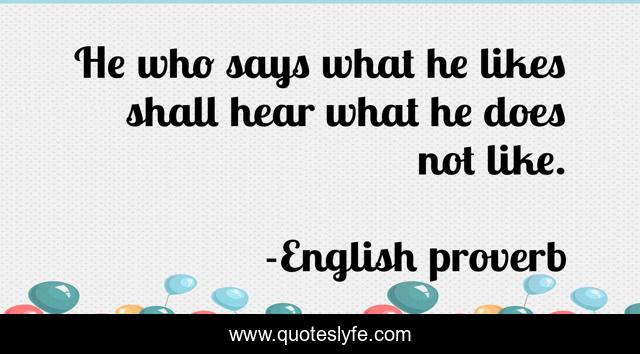 This page presents the quote "He who says what he likes shall hear what he does not like.". Author of this quote is English proverb. This quote is about politeness, manners,.