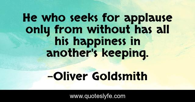 This page presents the quote "He who seeks for applause only from without has all his happiness in another's keeping.". Author of this quote is Oliver Goldsmith. This quote is about self, acceptance,.