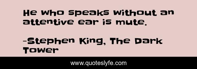 This page presents the quote "He who speaks without an attentive ear is mute.". Author of this quote is Stephen King, The Dark Tower. This quote is about enthusiasm, inspirational, wisdom,.