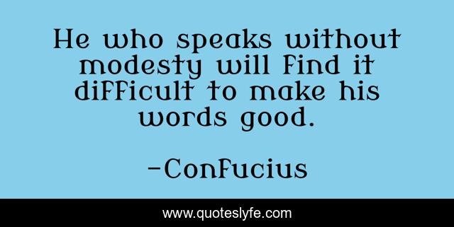 This page presents the quote "He who speaks without modesty will find it difficult to make his words good.". Author of this quote is Confucius. This quote is about enthusiasm, inspirational,.
