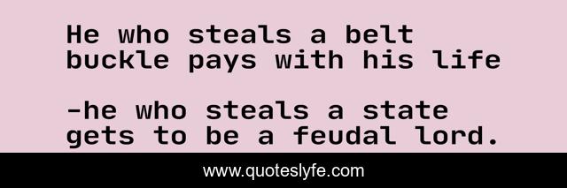 "he who steals a state gets to be a feudal lord. Quotes." Quoteslyfe.com, 2025. Sun. 07 Dec. 2025. <https://www.quoteslyfe.com/quote/He-who-steals-a-belt-buckle-pays-174174>.