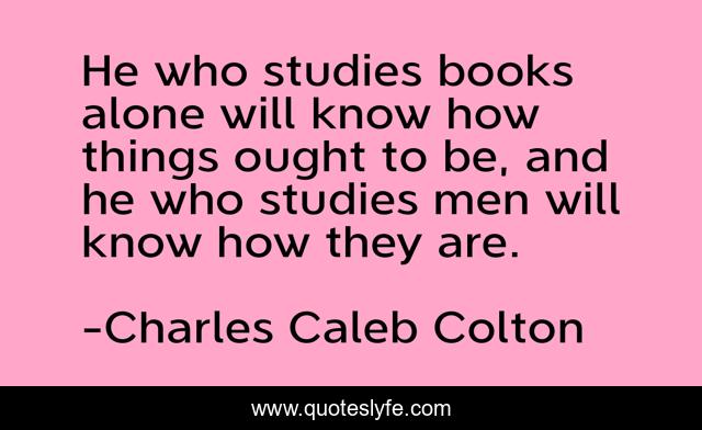 This page presents the quote "He who studies books alone will know how things ought to be, and he who studies men will know how they are.". Author of this quote is Charles Caleb Colton. This quote is about alone, men,.