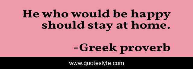 "Greek proverb Quotes." Quoteslyfe.com, 2025. Fri. 05 Dec. 2025. <https://www.quoteslyfe.com/quote/He-who-would-be-happy-should-stay-267584>.