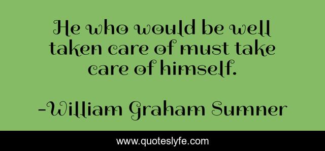 This page presents the quote "He who would be well taken care of must take care of himself.". Author of this quote is William Graham Sumner. This quote is about self, reliance,.
