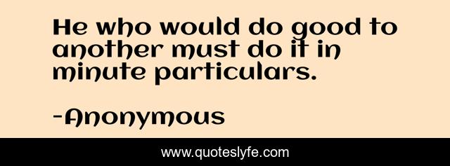 This page presents the quote "He who would do good to another must do it in minute particulars.". Author of this quote is Anonymous. This quote is about giving, goodness,.