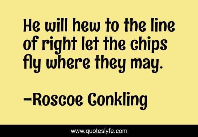 This page presents the quote "He will hew to the line of right let the chips fly where they may.". Author of this quote is Roscoe Conkling. .