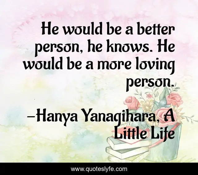 This page presents the quote "He would be a better person, he knows. He would be a more loving person.". Author of this quote is Hanya Yanagihara, A Little Life. This quote is about better, person, loving,.
