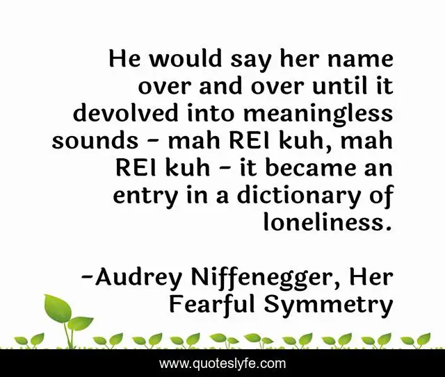 This page presents the quote "He would say her name over and over until it devolved into meaningless sounds - mah REI kuh, mah REI kuh - it became an entry in a dictionary of loneliness.". Author of this quote is Audrey Niffenegger, Her Fearful Symmetry. .