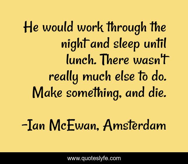 This page presents the quote "He would work through the night and sleep until lunch. There wasn't really much else to do. Make something, and die.". Author of this quote is Ian McEwan, Amsterdam. This quote is about death, work,.