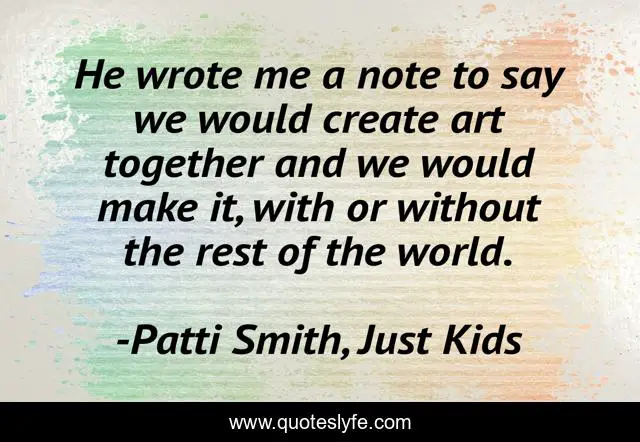 This page presents the quote "He wrote me a note to say we would create art together and we would make it, with or without the rest of the world.". Author of this quote is Patti Smith, Just Kids. .