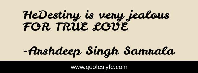 This page presents the quote "HeDestiny is very jealous FOR TRUE LOVE". Author of this quote is Arshdeep Singh Samrala. This quote is about true-love, arsh-samrala, arshdeep-singh-samrala, destiny,.