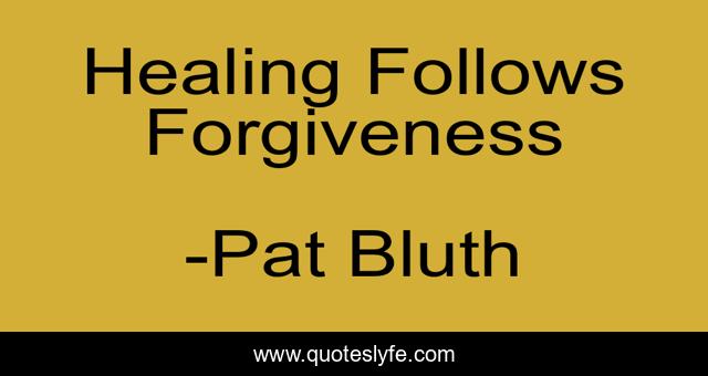 This page presents the quote "Healing Follows Forgiveness". Author of this quote is Pat Bluth. This quote is about grief, forgiveness, healing, hope,.