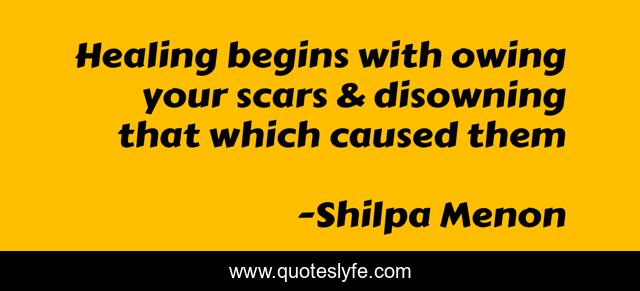 "Shilpa Menon Quotes." Quoteslyfe.com, 2025. Sun. 07 Dec. 2025. <https://www.quoteslyfe.com/quote/Healing-begins-with-owing-your-scars-disowning-148008>.