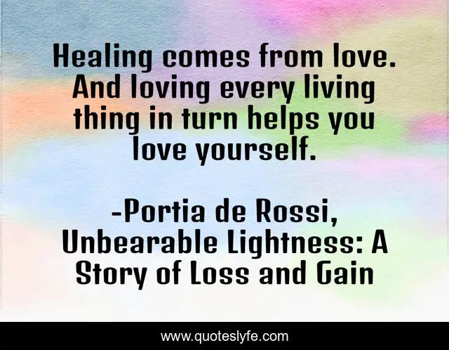"Portia de Rossi, Unbearable Lightness: A Story of Loss and Gain Quotes." Quoteslyfe.com, 2025. Sat. 06 Dec. 2025. <https://www.quoteslyfe.com/quote/Healing-comes-from-love-And-loving-every-147707>.
