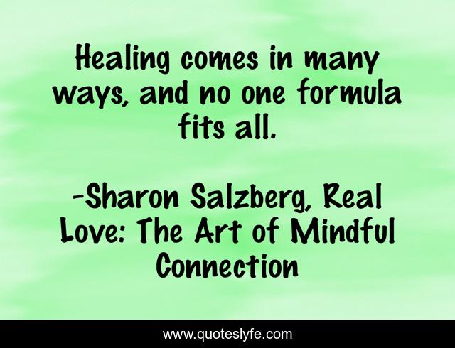 This page presents the quote "Healing comes in many ways, and no one formula fits all.". Author of this quote is Sharon Salzberg, Real Love: The Art of Mindful Connection. This quote is about individuality, love, healing-the-past, patience, healing, real-love, transformation, affection,.