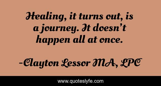 "Clayton Lessor MA, LPC Quotes." Quoteslyfe.com, 2025. Mon. 08 Dec. 2025. <https://www.quoteslyfe.com/quote/Healing-it-turns-out-is-a-journey-86050>.
