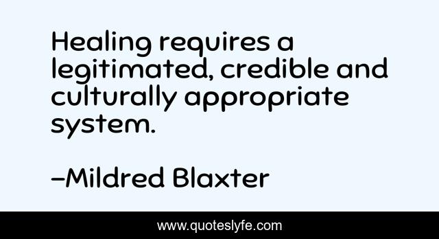 "Mildred Blaxter Quotes." Quoteslyfe.com, 2025. Sat. 06 Dec. 2025. <https://www.quoteslyfe.com/quote/Healing-requires-a-legitimated-credible-and-culturally-148223>.