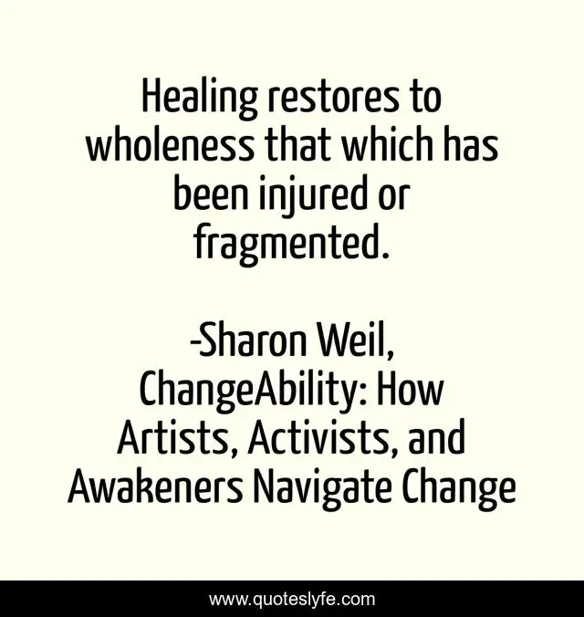 "Sharon Weil, ChangeAbility: How Artists, Activists, and Awakeners Navigate Change Quotes." Quoteslyfe.com, 2025. Sat. 06 Dec. 2025. <https://www.quoteslyfe.com/quote/Healing-restores-to-wholeness-that-which-has-59914>.