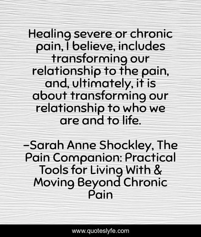 "Sarah Anne Shockley, The Pain Companion: Practical Tools for Living With & Moving Beyond Chronic Pain Quotes." Quoteslyfe.com, 2025. Mon. 08 Dec. 2025. <https://www.quoteslyfe.com/quote/Healing-severe-or-chronic-pain-I-believe-76236>.