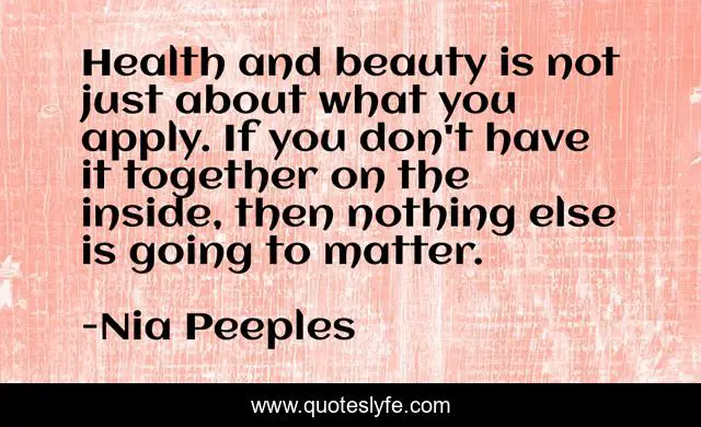 "Nia Peeples Quotes." Quoteslyfe.com, 2025. Mon. 08 Dec. 2025. <https://www.quoteslyfe.com/quote/Health-and-beauty-is-not-just-about-311678>.