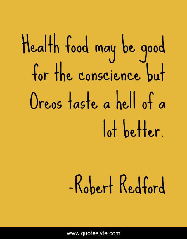 This page presents the quote "Health food may be good for the conscience but Oreos taste a hell of a lot better.". Author of this quote is Robert Redford. This quote is about conscience, good, health,.