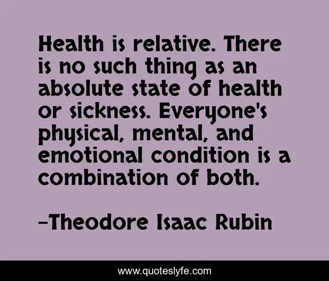 "Theodore Isaac Rubin Quotes." Quoteslyfe.com, 2025. Fri. 05 Dec. 2025. <https://www.quoteslyfe.com/quote/Health-is-relative-There-is-no-such-311417>.