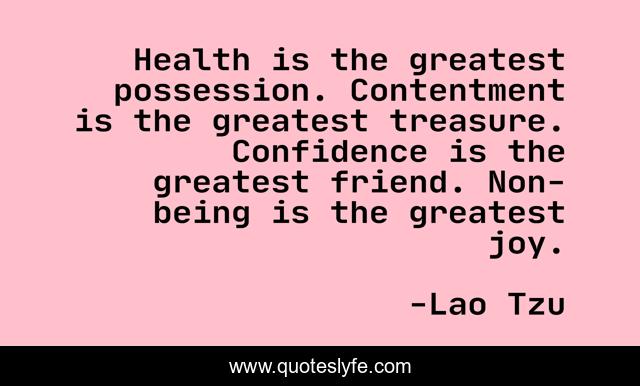 This page presents the quote "Health is the greatest possession. Contentment is the greatest treasure. Confidence is the greatest friend. Non-being is the greatest joy.". Author of this quote is Lao Tzu. This quote is about joy, confidence, health,.