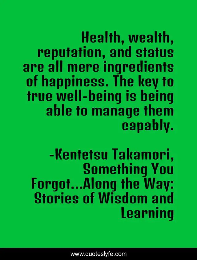 Kentetsu Takamori, Something You Forgot...Along the Way: Stories of Wisdom and Learning Quotes: Health, wealth, reputation, and status are all mere ingredients of happiness. The key to true well-being is being able to manage them capably.