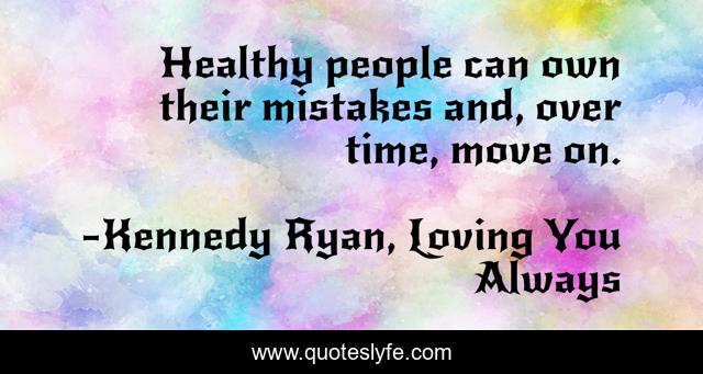 This page presents the quote "Healthy people can own their mistakes and, over time, move on.". Author of this quote is Kennedy Ryan, Loving You Always. This quote is about healthy, mistakes, move-on, time,.
