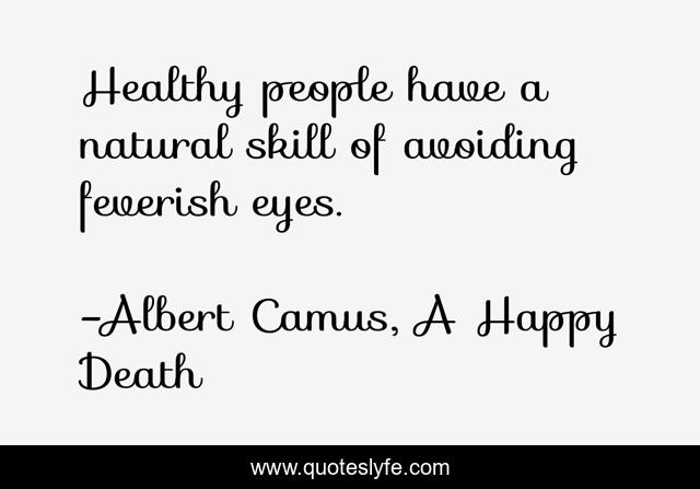 This page presents the quote "Healthy people have a natural skill of avoiding feverish eyes.". Author of this quote is Albert Camus, A Happy Death. .