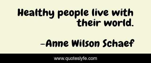 This page presents the quote "Healthy people live with their world.". Author of this quote is Anne Wilson Schaef. This quote is about healthy, world, people,.