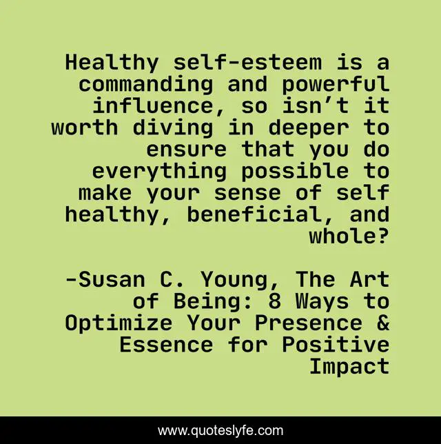 "Susan C. Young, The Art of Being: 8 Ways to Optimize Your Presence & Essence for Positive Impact Quotes." Quoteslyfe.com, 2025. Fri. 05 Dec. 2025. <https://www.quoteslyfe.com/quote/Healthy-self-esteem-is-a-commanding-and-142624>.