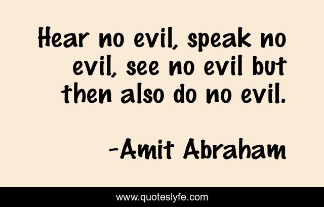 This page presents the quote "Hear no evil, speak no evil, see no evil but then also do no evil.". Author of this quote is Amit Abraham. This quote is about evil-thoughts, evil-eye, evil-speaking, evil,.
