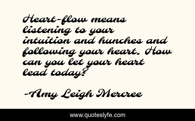"Amy Leigh Mercree Quotes." Quoteslyfe.com, 2025. Sat. 06 Dec. 2025. <https://www.quoteslyfe.com/quote/Heart-flow-means-listening-to-your-intuition-14384>.