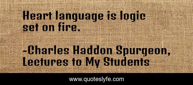 "Charles Haddon Spurgeon, Lectures to My Students Quotes." Quoteslyfe.com, 2025. Fri. 05 Dec. 2025. <https://www.quoteslyfe.com/quote/Heart-language-is-logic-set-on-fire-92710>.
