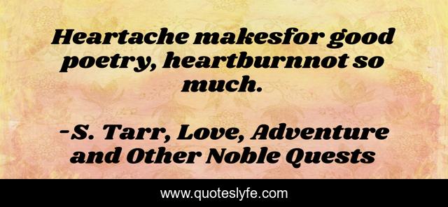 "S. Tarr, Love, Adventure and Other Noble Quests Quotes." Quoteslyfe.com, 2025. Mon. 08 Dec. 2025. <https://www.quoteslyfe.com/quote/Heartache-makesfor-good-poetry-heartburnnot-so-much-248031>.