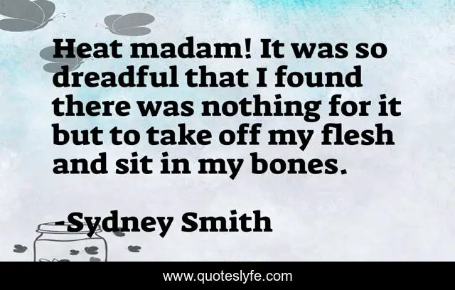 "Sydney Smith Quotes." Quoteslyfe.com, 2025. Mon. 08 Dec. 2025. <https://www.quoteslyfe.com/quote/Heat-madam-It-was-so-dreadful-that-274453>.