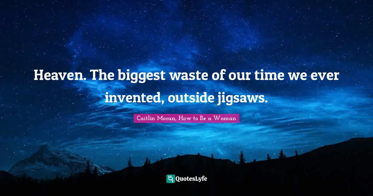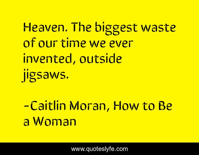 This page presents the quote "Heaven. The biggest waste of our time we ever invented, outside jigsaws.". Author of this quote is Caitlin Moran, How to Be a Woman. This quote is about religion, humour,.