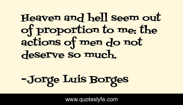 This page presents the quote "Heaven and hell seem out of proportion to me: the actions of men do not deserve so much.". Author of this quote is Jorge Luis Borges. This quote is about eternity, hell, heaven,.