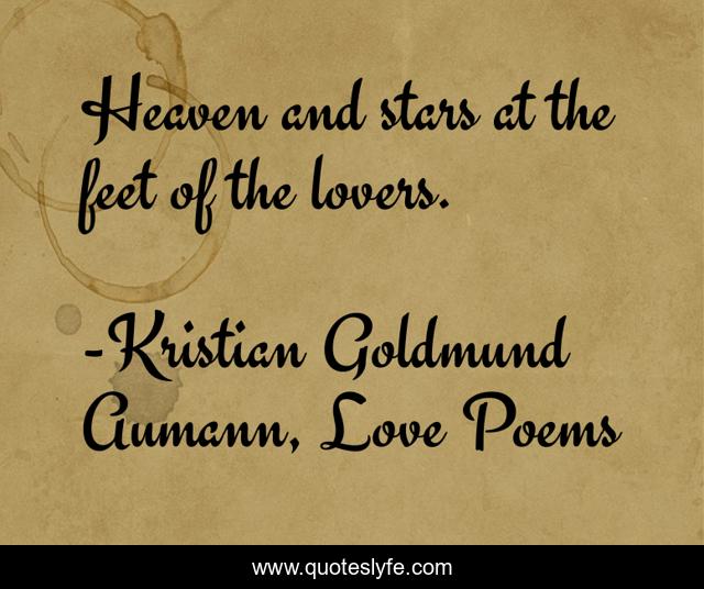 This page presents the quote "Heaven and stars at the feet of the lovers.". Author of this quote is Kristian Goldmund Aumann, Love Poems. This quote is about heaven, lovers, stars,.