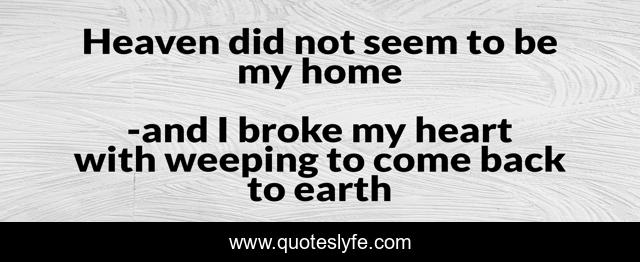 This page presents the quote "Heaven did not seem to be my home". Author of this quote is and I broke my heart with weeping to come back to earth. .