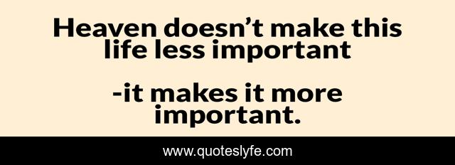 "it makes it more important. Quotes." Quoteslyfe.com, 2025. Mon. 08 Dec. 2025. <https://www.quoteslyfe.com/quote/Heaven-doesn-t-make-this-life-less-152436>.