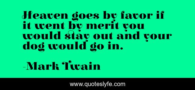 This page presents the quote "Heaven goes by favor if it went by merit you would stay out and your dog would go in.". Author of this quote is Mark Twain. .