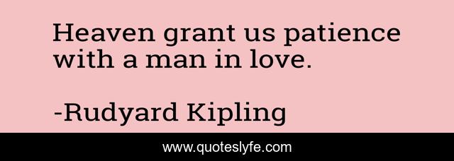 This page presents the quote "Heaven grant us patience with a man in love.". Author of this quote is Rudyard Kipling. This quote is about heaven, love, affection, man,.