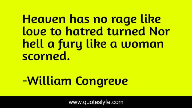This page presents the quote "Heaven has no rage like love to hatred turned Nor hell a fury like a woman scorned.". Author of this quote is William Congreve. .