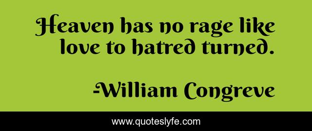 This page presents the quote "Heaven has no rage like love to hatred turned.". Author of this quote is William Congreve. This quote is about love, affection,.