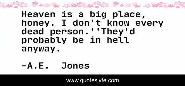 "A.E. Jones Quotes." Quoteslyfe.com, 2025. Sat. 06 Dec. 2025. <https://www.quoteslyfe.com/quote/Heaven-is-a-big-place-honey-I-183998>.