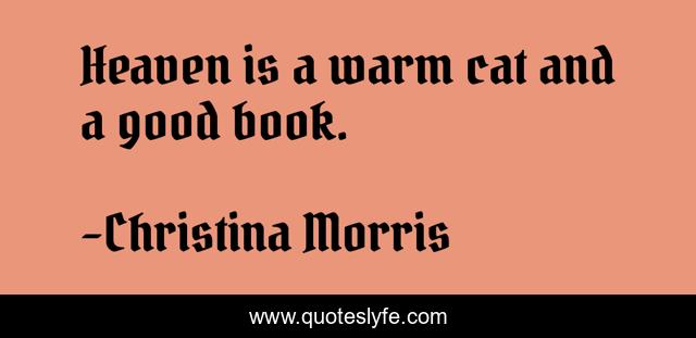 This page presents the quote "Heaven is a warm cat and a good book.". Author of this quote is Christina Morris. This quote is about books, heaven, reading, cat,.