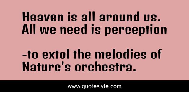 This page presents the quote "Heaven is all around us. All we need is perception". Author of this quote is to extol the melodies of Nature's orchestra.. .