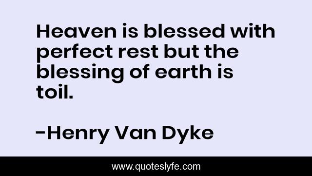 This page presents the quote "Heaven is blessed with perfect rest but the blessing of earth is toil.". Author of this quote is Henry Van Dyke. .